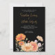 The invitation is designed in a timeless black colour with a simple white font that complements the orange and pink floral bouquet perfectly. The couples' names are highlighted in a modern orange script font to match the flower bouquet, creating a unique and personalised touch.