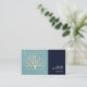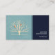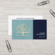 Business cards with a muted green background layered over top is a light yellow tree with 2 orange bird silhouettes sitting on the branches.