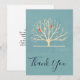 A flat thank you card with a message on the back you can personalise. Designed with a muted green background layered over top is a light yellow tree with 2 orange bird silhouettes sitting on the branches.