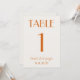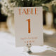 Modern and elegant whimsical orange and cream wedding table numbers. As you see it features a cream background with bold orange script that matched the whole suite.