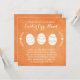 A modern invitation for an Easter Egg Hunt Party featuring a simple and modern illustration of Easter eggs with floral wreaths on a printed textured orange backgroud. The text is in white and is fully customisable for your own special Easter celebration.