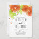 Moder orange flowers and typography floral fall wedding invitation. It showcases a bouquet of orange ethereal flowers with green leaves, your names in a modern typography style and your text.