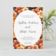 What makes this invitation truly special is the intricate border surrounding the oval. The border is filled with a stunning array of orange flowers in different shades, including some darker hues, perfect for the Autumn months. The combination of warm colours creates an inviting and cosy atmosphere, perfect for a fall wedding celebration.