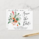 Modern watercolor wildflowers trendy orange floral wedding Save the Date postcard.