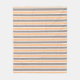 This fleece blanket features modern stripe pattern in peachy orange, grey and white.