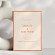 This modern orange Save the Date design features bold minimalist typography framed by a clean border for a confident, contemporary look. The warm coral-orange tone adds energy while the simple layout keeps the focus on your names and date. Perfect for couples who love clean design, strong colour, and a fresh editorial feel. Personalise with your wedding details to create a striking first impression that feels both modern and timeless.