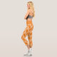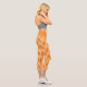 These capri leggings feature a trendy geometric herringbone pattern in peach, orange, and white.