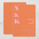 Modern Orange Pink Monogram Initials Wedding Invitation