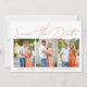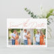 Whimsical Verona sunset orange script calligraphy three photo collage fall Save the Date card. Announce your upcoming nuptials with this exquisitely designed Save the Date card, featuring a warm orange script calligraphy that lends an air of refined elegance. The front of the card is a visually pleasing three-photo collage, allowing you to showcase cherished moments. Turning the card over, you'll discover yet another beloved photograph, accompanied by the couple's names and a convenient link to their wedding website, ensuring guests have all the necessary details at hand.