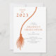 Minimalist Class of 2022 graduation party invitation featuring a orange tassel set on a white background. Visit our shop to view this design in a variety of school colors.
