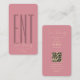 Modern ENT Ear Nose Throat otolaryngologist Specialist Doctor Pink Gold Monogram business card with QR code