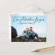 Modern wedding save the date postcard features typography script ''our adventure begins'' in trendy lettering, names, location date and photo on the front. Personalise further with your message and details on the back.