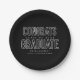 Modern outline typography bold type in white, personalised graduation party plate. Background colour shown in classic black can be customised.