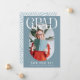 Announce your good news with this stylish modern graduate announcement card. Design features a dusky teal background that can be changed to any colour, stylish GRAD lettering, the grads name in signature script over the top, an oval photo, a custom message, degree, place of study and class year.