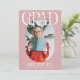 Invite friends and family to celebrate your good news with this stylish modern graduation party invitation. Design features a dusky pink background that can be changed to any colour, stylish GRAD lettering, the grads name in signature script over the top, an oval photo, a custom message, degree, place of study and class year. On the reverse there is an elegant template that you can customise your own event details.