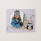 The Puzzle features a pair of cheerful owls in cool, modern colours among floral vines. Add your own photograph for a sweet memento.