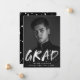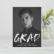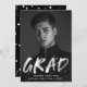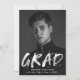 Announce your graduation with our Modern Paint Splatter photo graduation announcements. The design features the graduate's vertical photo with "Grad" in white lettering with white paint splatters. Personalise the front of the creative graduation announcements by adding the graduate's name, school name, and graduation year. The back of the announcement features a black background with white paint splatters. The design is perfect to use for both high school and college graduates.