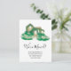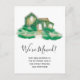 We have moved! A cute and fun quirky illustration of a hand painted green countryside house watercolor moving announcement and an elegant and modern script calligraphy typography.