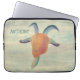 Carry your computer in style with this laptop sleeve featuring my artsy watercolor painted style illustration of a goat's head. This cute and colourful goat has horns and a beard and is shades of orange, blue, teal, and purple. The computer sleeve is ready to be personalised with a name in coordinating teal coloured lettering.
