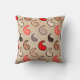 Throw pillow in a minimalist, modern paisley pattern, outlined accented with dots - shades of stone grey / grey, deep red, coral, and cocoa brown, on a medium beige background