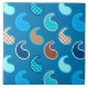 PH in a minimalist, modern paisley pattern, outlined accented with dots - shades of turquoise, navy, beige, brown, aqua, and cream on a medium cerulean background