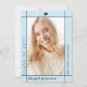 Modern pale blue Class of 2025 graduation photo Announcement. This Class of 2025 graduation photo Announcement has a contemporary touch with its light blue colour scheme. The announcement showcases a sleek black border against a soft pale blue background, creating a stylish frame for the graduate's photo. To maintain a clean aesthetic, the name and other important information are elegantly positioned outside the frame on a matching pale blue background. On the back of the announcement, there is an additional photo along with all the necessary details about the graduation ceremony.