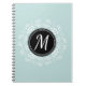 Beautiful notebook with mint blue floral wreath and personalised monogram.