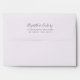 The inside of this elegant modern wedding invitation envelope features a purple watercolor agate design trimmed with faux gold glitter. Customise the back flap with the names of the bride and groom in charcoal grey handwriting script and return address in copperplate font on a pale purple background.