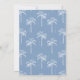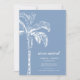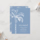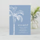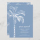 Tropical moving announcement featuring a palm tree set on a blue background with a matching palm tree back.