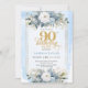 Modern pastel blue gold design 90th birthday invit invitation