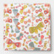A pretty pattern of butterflies in soft green, pink, blue and yellow.