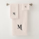 Modern Pastel Pink Elegant Black Monogram Initial Bath Towel Set