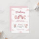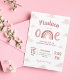 Invite your friends and loved ones to your child's pastel pink rainbow first birthday party with this whimsical invitation embellished with soft pink clouds and a cute rainbow lettering saying "one".