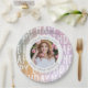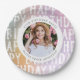Modern contemporary photo birthday party decor paper plates. With space for photo and information . Modern girly pink, pur[ple, teal, blue, green, orange, yellow pastel rainbow and white colour can be customised to suit your style.