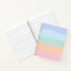 This stylish, modern notebook features pastel rainbow stripes in periwinkle, aqua, mint green, coral peach, and pink. A text template is included for easy personalisation, and the back contains a matching stripes design. Great for Back to School!
