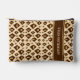 A refined geometric pattern featuring brown and white squares, diamonds, and hexagons on a warm beige background.