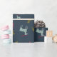 Filled with polka-dots and doodles, and adorned with holiday lights, modern reindeer bound across a navy blue background. Coordinating gift tags and ribbon also available.