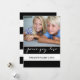 Send out your holiday greetings to family and friends with this versatile, bold, modern holiday photo card with the words "Peace, Joy, Love" written in a white script font on bold stripes pattern. Design by ELKE CLARKE© FOR MONOGRAMGALLERY. Replace sample photo with your own. Black and white striped background on back of card. Other colours available in store or on request.