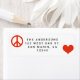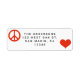 This modern holiday return address label features a classic white background with modern peace sign and heart in red. **ALL colours including symbols, background, and text are customisable using the design tool.