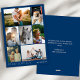 The design features modern bold text that reads "Peace Love Joy" with custom family name template in elegant handwritten script and multiple photo collage holiday greeting card. The navy blue with silver adds a modern and sophisticated touch, making it a perfect keepsake for your loved ones.