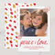 The Modern Peace & Love Photo Holiday Card design features a photo placeholder with gold & red scattered dots in the lower left and upper right corner and the words Peace & Love in a modern brush script. This holiday card coordinates with items in the Peace & Love Holiday Collection by The Spotted Olive. COPYRIGHT ©2016 by The Spotted Olive, All Rights Reserved.