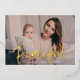 Modern holiday card featuring your horizontal photo with "Peaceful" displayed in a hand-lettered gold foil brush script overlay. Personalise the foil holiday card by adding your name and the year. The back of the card features an icy blue snowflake pattern.