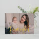 Modern Peaceful Script Ice Blue Photo Foil Holiday Card