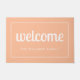 Modern Peach and White Personalised Welcome Doormat. Bold typography.