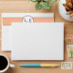 A modern peach wedding envelope with a touch of vintage charm, showcasing custom initials on a trendy band. The front of the envelope displays a peach band with your monogram delicately positioned on the flap, while the inside reveals a stylish geometric pattern of white crosses on a peach backdrop.