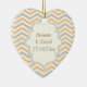 Modern peach, grey, ivory chevron pattern custom ornament design. There is a frame with your names in the centre. Add your text, monogram or initials. A stylish zig zag design using the classic stripes with contemporary yet vintage look in a sense that can be personalised. You can change background and text colour choosing from over 200 colours from Zazzle colour chart. Elegant, classy and playful design to protect your electronic devices.