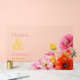 Celebrate your wedding with these modern and stylish peach, pink, orange and yellow poppies acrylic wedding welcome signs. This modern, elegant peach, yellow and pink poppies themed wedding sign is customisable with your own details.