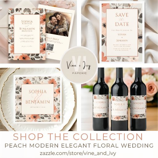 Peach Modern Elegant Floral Wedding SuiteDesigned by Frances W.