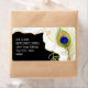 NOTE: If you use this blank, you will not be able to print your addresses on them because of the black background! However, you can write on them with a white gel type pen. COLOR PALETTE: black, white, cream, gold, mustard, aqua blue, royal blue, purple and green. DESIGN COLLECTION: Matching return mailing address labels for your envelopes. This very trendy and chic, modern style wedding invitation set was created from hand painted watercolor artwork designed by Audrey Jeanne Roberts. The artwork includes a faux wired edge ribbon, curling across the page with original art peacock feathers with delicate swirling feather wisps. On the reverse side is a set of three peacocks feather elements laid over the all over damask background pattern. Your invitation text is in white to contrast the deep rich jewel tone colours, and is easily personalised using the template fields provided.