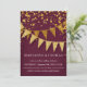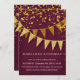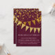 Sleek. Modern. Chic. Understated glam - with glittering pennant banners in two shades of golden glitter with sparkling twinkling falling confetti in various sizes and shade of gold. Sparkly starburst shining stars highlight the sparkle. A very contemporary typography text layout that is anything but traditional. It is simple and short. It says to your guests, "We're throwing a party and it will be the party of a lifetime!" For the elegant but non-traditional bride and groom. COLORS: deep dark wine burgundy crimson red and gold, golden glitters. Especially suited for fall or winter weddings, New Year's Eve Parties, Birthday parties and Anniversary party announcements.